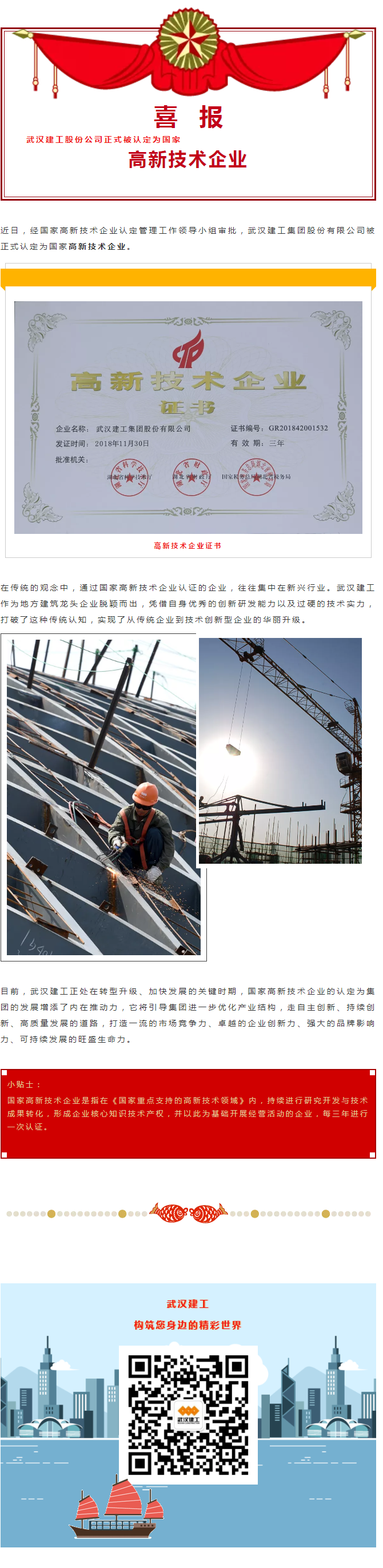 【喜報】武漢建工集團(tuán)股份有限公司正式被認(rèn)定為國家“高新技術(shù)企業(yè)”